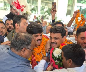 नवनियुक्त कांग्रेस प्रदेश अध्यक्ष गणेश गोदियाल का जोलीग्रांट एयरपोर्ट पहुंचने पर कांग्रेस के प्रदेश महामंत्री सचिन गुप्ता ने किया गर्मजोशी से स्वागत