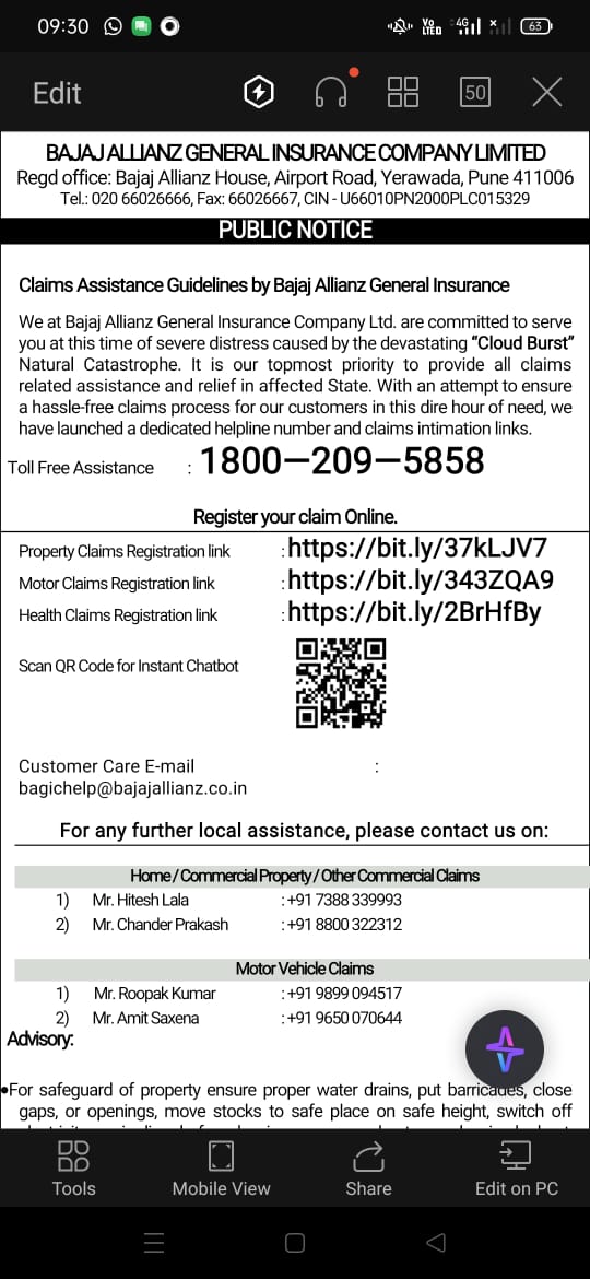 Bajaj Allianz has issued a public notice for customers affected by the Uttarkashi cloudburst.