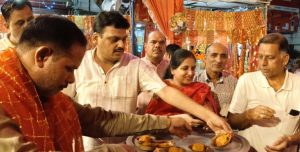 तथा पूजा-अर्चना की,वहीं कांग्रेस पार्टी से मेयर प्रत्याशी रही श्रीमती पूजा गुप्ता एवं कांग्रेस के प्रदेश महामंत्री सचिन गुप्ता के साथ माता की आरती में शामिल हुई।मंदिर समिति के प्रधान अशोक अग्रवाल एवं कोषाध्यक्ष अनिल अग्रवाल ने आरती में शामिल हुए