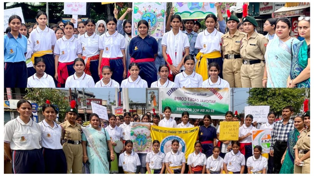 84 उत्तराखंड बटालियन रूड़की एनसीसी ने ‘स्वच्छता ही सेवा अभियान के तहत मैथोडिस्ट गर्ल्स पी.जी कालेज रूड़की ने एनसीसी सीटीओ वंदना चौहान के नेतृत्व में एनसीसी कैडेट्स छात्राओं द्वारा “एक घंटा स्वच्छता के नाम” के अंतर्गत स्वच्छता जागरुकता रैली निकाली