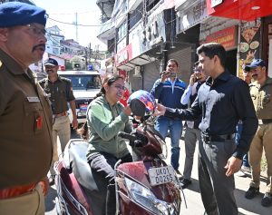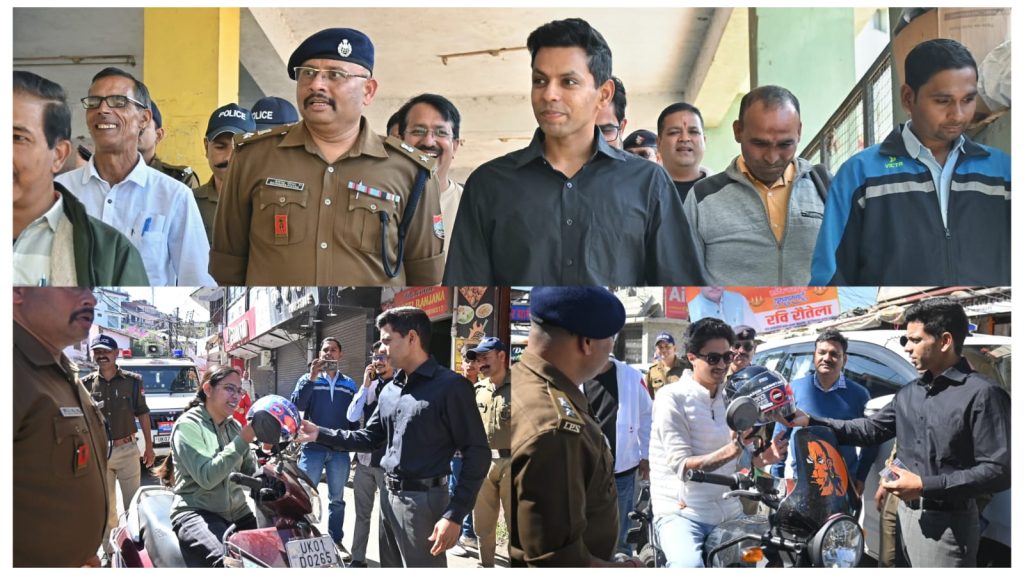जिलाधिकारी अंशुल सिंह और वरिष्ठ पुलिस अधीक्षक देवेंद्र पींचा ने रविवार को नगर क्षेत्र में यातायात व्यवस्था और सड़क सुरक्षा की हकीकत का संयुक्त निरीक्षण किया। इस दौरान उन्होंने न केवल सड़कों का मुआयना किया बल्कि स्वयं हेलमेट वितरित कर लोगों को “सेफ ड्राइविंग, सेफ लाइफ” का संदेश दिया।