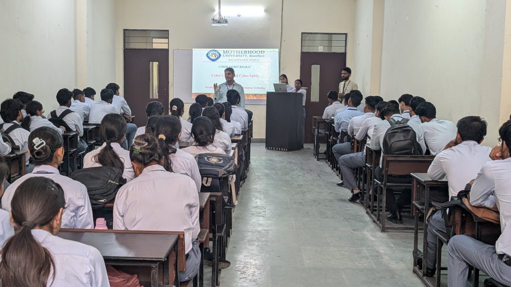 रुड़की। मदरहुड विश्वविद्यालय, रुड़की में राष्ट्रीय साइबर सुरक्षा जागरूकता सप्ताह के अंतर्गत “साइबर क्राइम और साइबर सेफ्टी (Cyber Crime and Cyber Safety)” विषय पर एक विशेष व्याख्यान का आयोजन किया गया। यह कार्यक्रम विश्वविद्यालय अनुदान आयोग (UGC) नई दिल्ली के निर्देशानुसार कंप्यूटर साइंस एवं सूचना प्रौद्योगिकी विभाग द्वारा आयोजित किया गया।