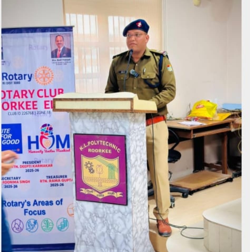 हरिद्वार पुलिस के *यातायात विभाग (रुड़की* )द्वारा आज कन्हैयालाल पॉलिटेक्निक कॉलेज, रुड़की में एक विशेष *यातायात जागरूकता कार्यक्रम* का आयोजन किया गया। जनपद के वरिष्ठ पुलिस अधीक्षक महोदय के आदेशानुसार एवं पुलिस अधीक्षक (यातायात) के निर्देशन में आयोजित इस कार्यक्रम का मुख्य *उद्देश्य युवा पीढ़ी को यातायात नियमों के प्रति संवेदनशील बनाना और सड़क दुर्घटनाओं को रोकने में उनकी भूमिका को मजबूत करना था* ।