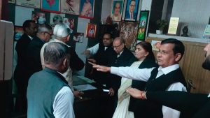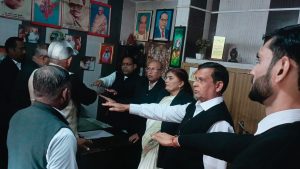 अधिवक्ता नीलकमल शर्मा व अधिवक्ता अशोक कुमार ने विचार व्यक्त कर कहा कि भारतीय संविधान को संम्मान देते हुए हमसब भारतीयों को भारत माता की रक्षा करने के लिए संविधान में वर्णित मूल अधिकार व कर्तव्यों का निर्वहन कर उत्पीड़ित व शोषित समाज को उनके अधिकारों को दिलाने व न्याय व्यवस्था को सुदृढ़ करने का संकल्प ले व संविधान के मूल्यों—समता, स्वतंत्रता, धर्मनिरपेक्षता और न्याय—का पालन करने की प्रतिबद्धता की शपथ ग्रहण कर रहे ताकि सदैव राष्ट्र्जन कल्याण में सर्वस्व न्योछावर कर संविधान की प्रस्तावना के आदर्शों को अपने दैनिक कार्यों और आचरण में आत्मसात करेंगे और देश को एक सशक्त और समृद्ध लोकतंत्र बनाने में योगदान करेंगे संगोष्ठी व शपथ ग्रहण कार्यक्रम में अधिवक्ता आशीष पंडित, अधिवक्ता गजेंद्र सिंह, अधिवक्ता सुनील कुमार गोयल, अधिवक्ता नसीम अहमद,अभिनव गोयल,अधिवक्ता राकेश व सचिन गोंड़वाल,पंकज जैन, बृजेश सैनी, राजेश वर्मा,आदि मौजूद रहे।