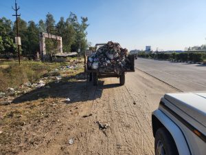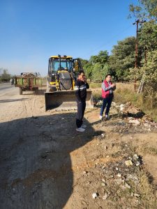 राष्ट्रीय राजमार्ग पर भी चलाया जा रहा स्वच्छता अभियान।