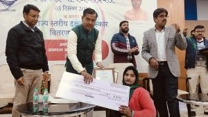 विश्व दिव्यांगजन दिवस के अवसर पर समाज कल्याण विभाग के तत्वाधान में आयोजित किया गया राज्य स्तरीय दक्षता सम्मान पुरस्कार वितरण कार्यकम।