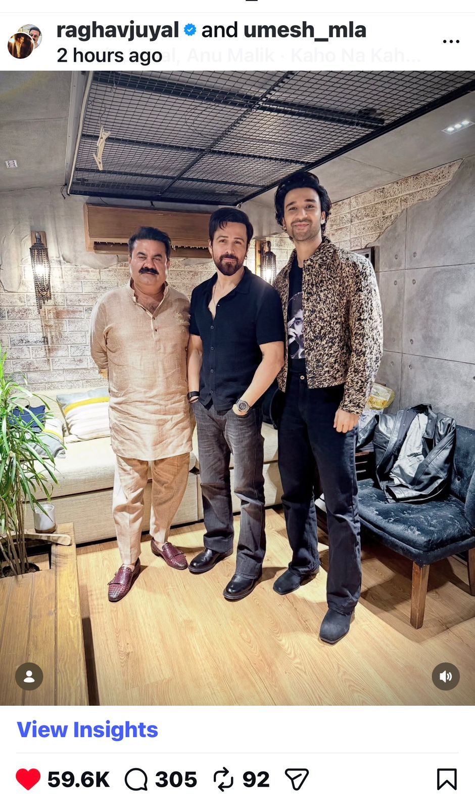 शाहरुख खान से लेकर सलमान खान तक, कई दिग्गज कलाकार राघव के टैलेंट और उनके अनोखे अंदाज़ की तारीफ कर चुके हैं। विधायक उमेश कुमार और इमरान हाशमी के साथ सामने आई इस तस्वीर को लेकर कई तरह के कयास लगाए जा रहे हैं। कुछ लोग इसे एक कैज़ुअल मुलाकात बता रहे हैं, तो वहीं कईयों का मानना है कि यह किसी आने वाले बड़े प्रोजेक्ट या खास कोलैबोरेशन की ओर इशारा कर रही है। हालांकि, फिलहाल राघव या इमरान की ओर से किसी भी तरह की आधिकारिक जानकारी सामने नहीं आई है।लेकिन इतना तय है कि राघव जुयाल अब जिस भी तस्वीर या प्रोजेक्ट से जुड़ते हैं, वह खबर बन जाती है। उनकी बढ़ती लोकप्रियता और दमदार परफॉर्मेंस साफ तौर पर यह दिखाती है कि राघव जुयाल बॉलीवुड के आने वाले समय में एक और बड़ा नाम बनने की पूरी तैयारी में हैं