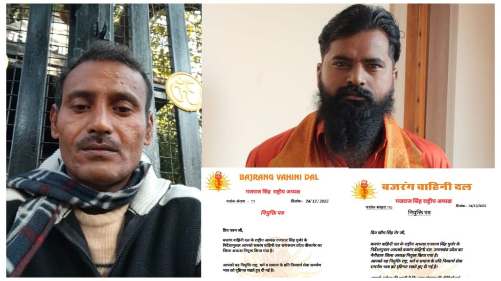 बजरंग वाहिनी दल के राष्ट्रीय अध्यक्ष श्री गजराज सिंह ने संगठन को सशक्त और विस्तारित करते हुए दो महत्वपूर्ण नियुक्तियों की घोषणा की है। इसके तहत उत्तराखण्ड प्रदेश के नैनीताल जिले में खीम सिंह खेर को जिलाध्यक्ष तथा राजस्थान प्रदेश के बीकानेर जिले में पवन को जिलाध्यक्ष पद की जिम्मेदारी सौंपी गई है।