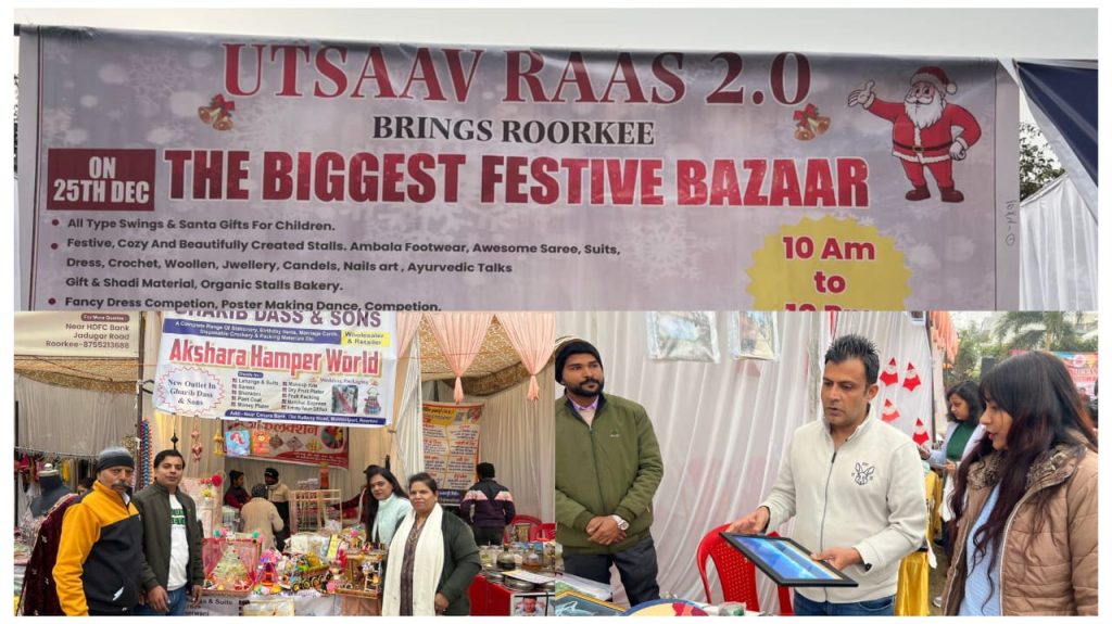 रुड़की। मैना आनंद के तत्वावधान में सिविल लाइन मिनरल गार्डन, ओल्ड नीलम टॉकीज के पास शहर का सबसे भव्य फेस्टिवल बाजार ‘उत्सव रास 2.0’ का आयोजन किया गया। यह रंगारंग बाजार 25 दिसंबर को सुबह 10 बजे से शाम 10 बजे तक आमजन के लिए खुला रहा, जहां परिवारों और युवाओं की भारी भीड़ उमड़ी