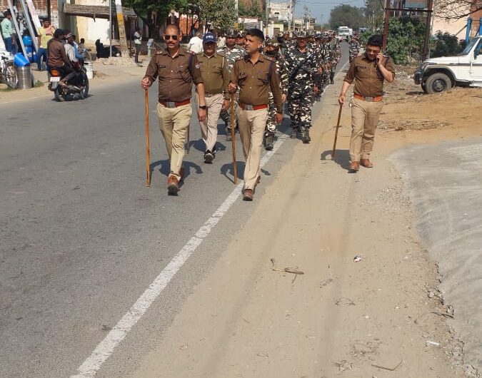 फ्लैग मार्च के दौरान आम जनता से आगामी लोकसभा चुनाव के दृष्टिगत शांतिपूर्ण चुनाव कराने हेतु पुलिस...
