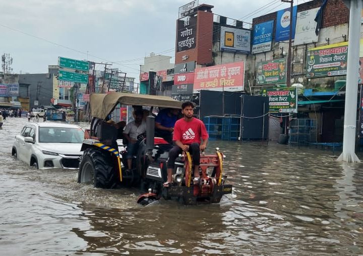 रात भर हुई भारी बारिश से जलभराव के कारण जनजीवन हुआ अस्त-व्यस्त,रामपुर चुंगी हुई समुद्र में तब्दील