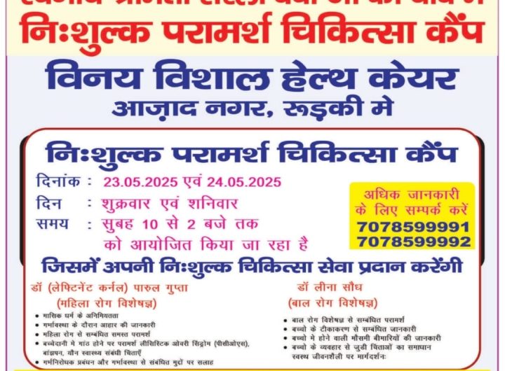(मनीष ग्रोवर रिपोर्ट) विनय विशाल हेल्थ केयर अस्पताल में स्वर्गीय श्रीमती सरला देवी की याद में निशुल्क...