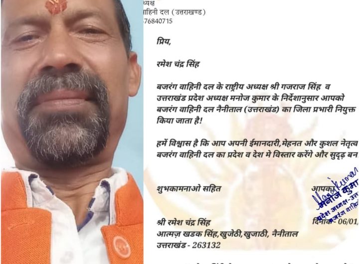 बजरंग वाहिनी दल का निरंतर विस्तार करते हुए नैनीताल के रमेश चंद सिंह को नैनीताल (उत्तराखंड) का...