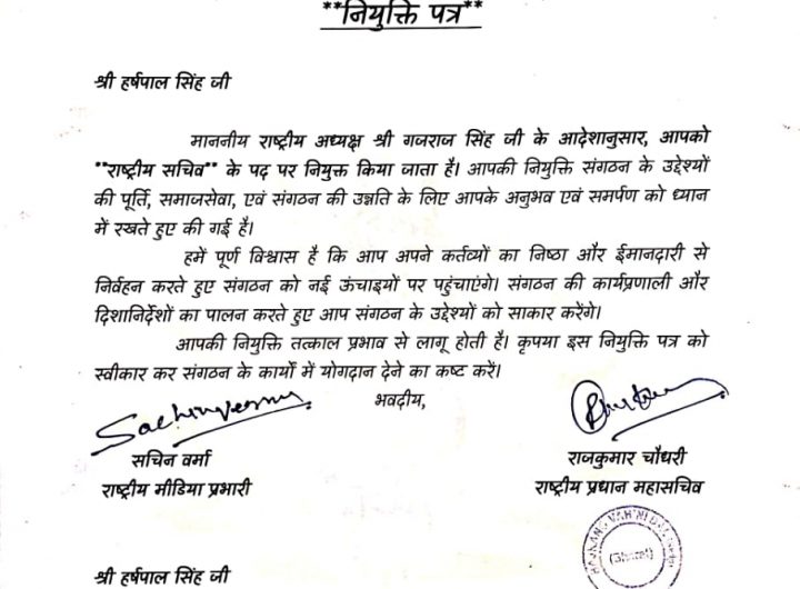 बजरंग वाहिनी दल हर्षपाल सिंह को राष्ट्रीय सचिव पद पर नियुक्त किया गया है। रुड़की बजरंग वाहिनी...