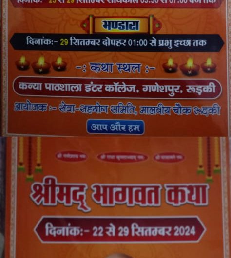 सभी धर्म प्रेमियों को सूचित किया जाता है कि की दिनांक 23 सितंबर 2024 से 29 सितंबर...